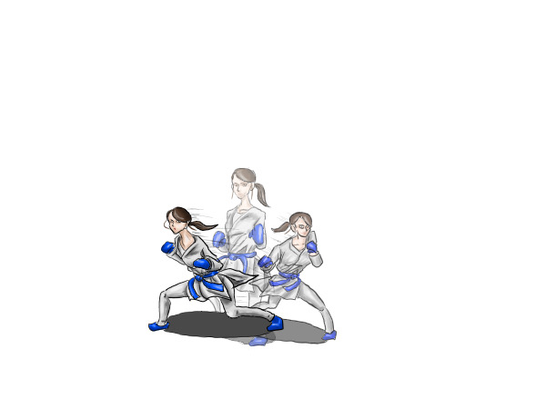 - 青は全ての突きを見極め、受けるかかわす